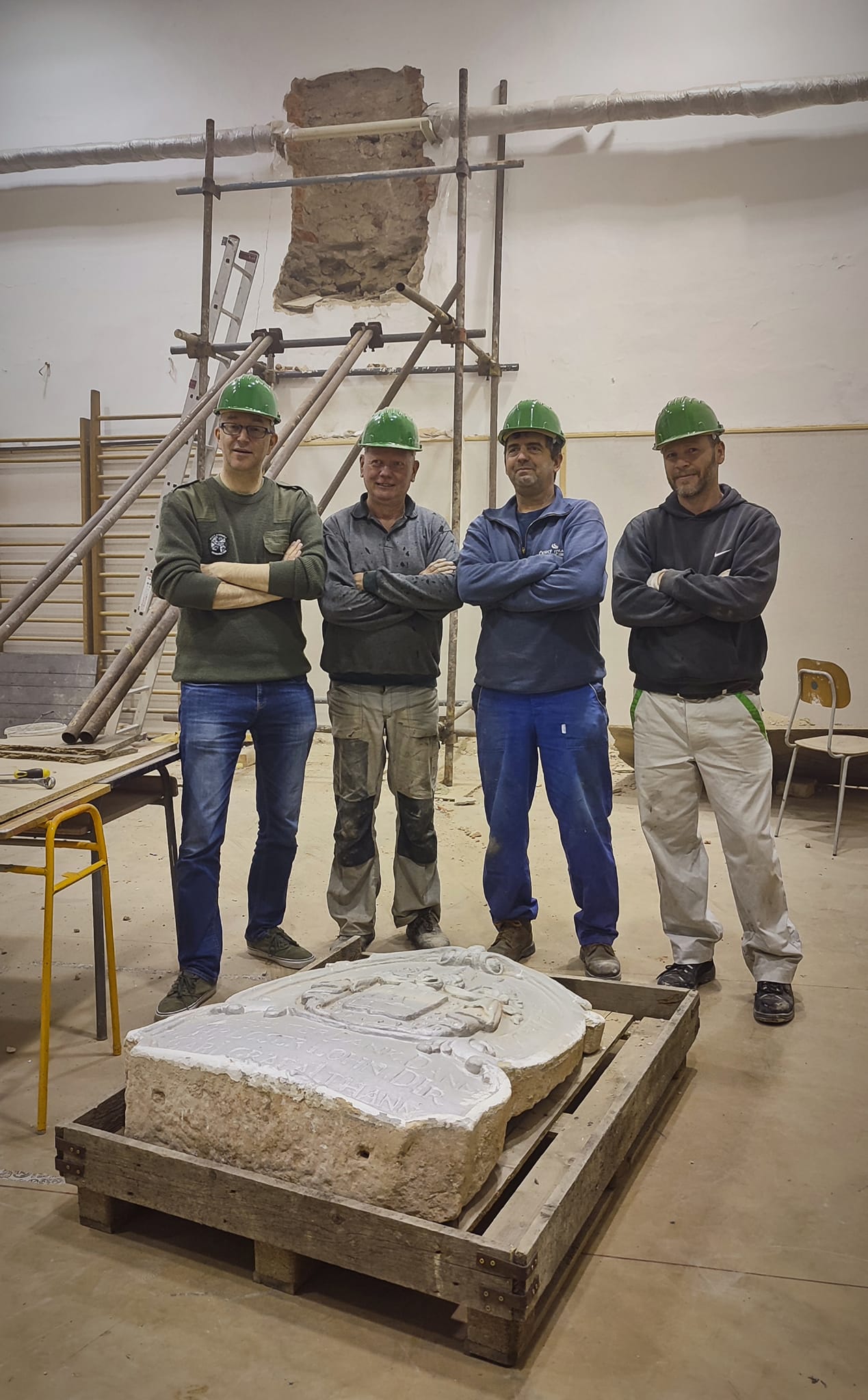 Naše spolkové Muzeum, v rámci péče o budoucí sbírku kamenných plastik a zbytků stavebních památek „Lapidárium města Králíky“, tento děkovný kámen z bývalé tělocvičny odborně vyjmulo. Kámen nyní čeká řádná očista a restaurace odborníkem a poté bude v budově muzea opět důstojně vystaven.